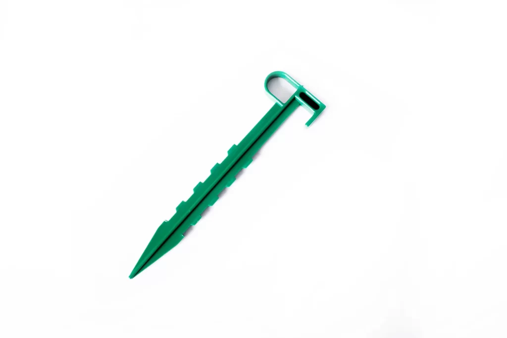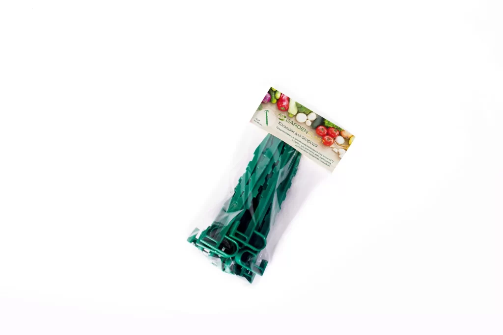 - Прочность и долговечность: пластиковые колышки не боятся ржавчины и гниения, что позволяет использовать их сезон за сезоном без потери качества.